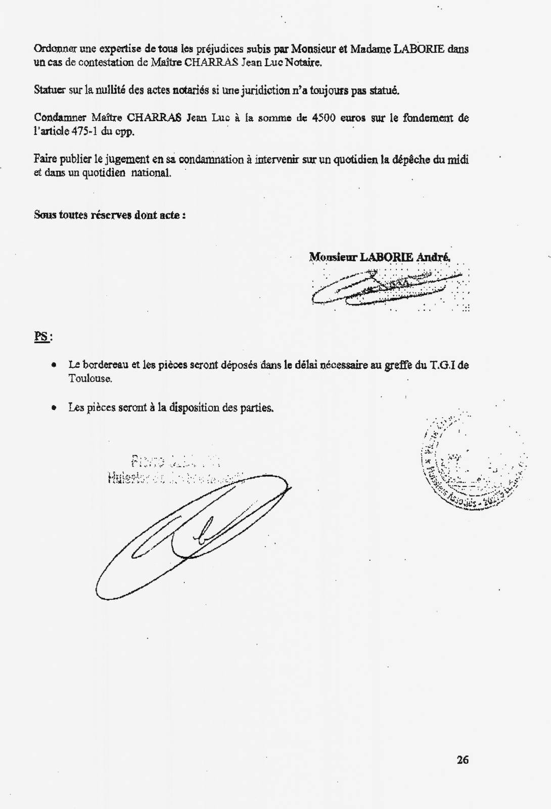 Jean Luc notaire envoyé à Monsieur LABORIE André au, N° 2 rue de la Forge 31650