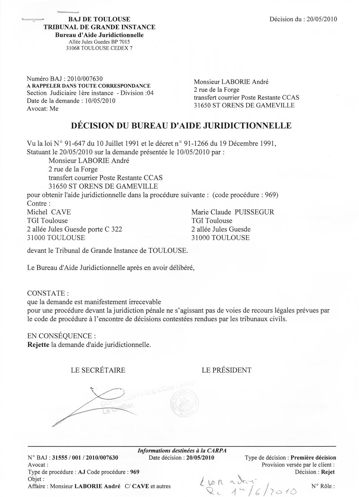 décision du 20/05/ 2010 BAJ N° 2010/007630