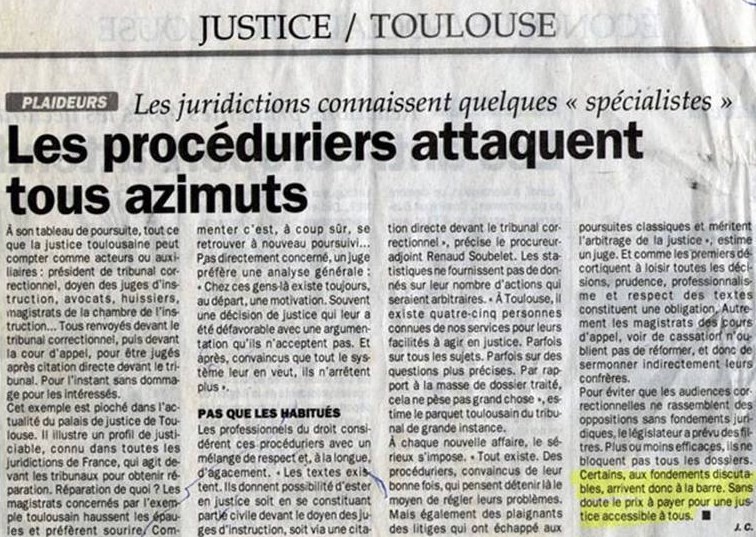 Que cet article sur la dépêche du midi a été mis suite à un arrêt rendu à l'encontre de Monsieur LANSAC Alain " Le tribunal "