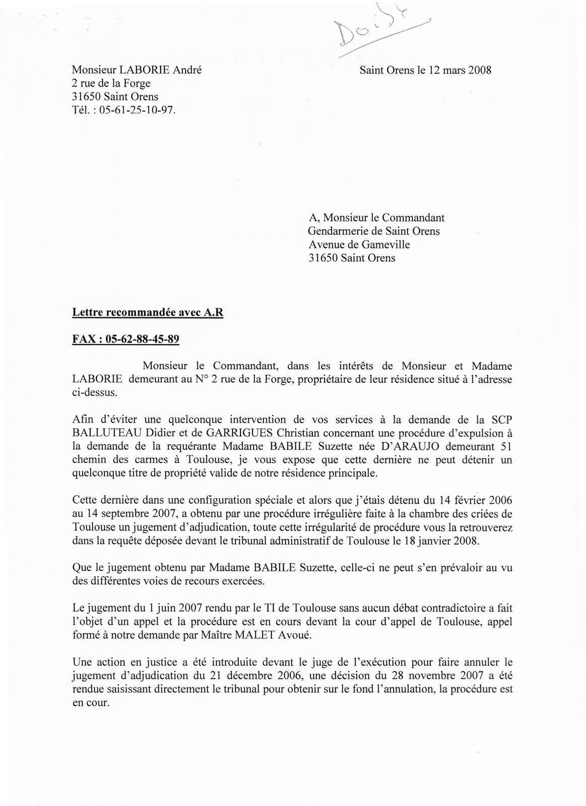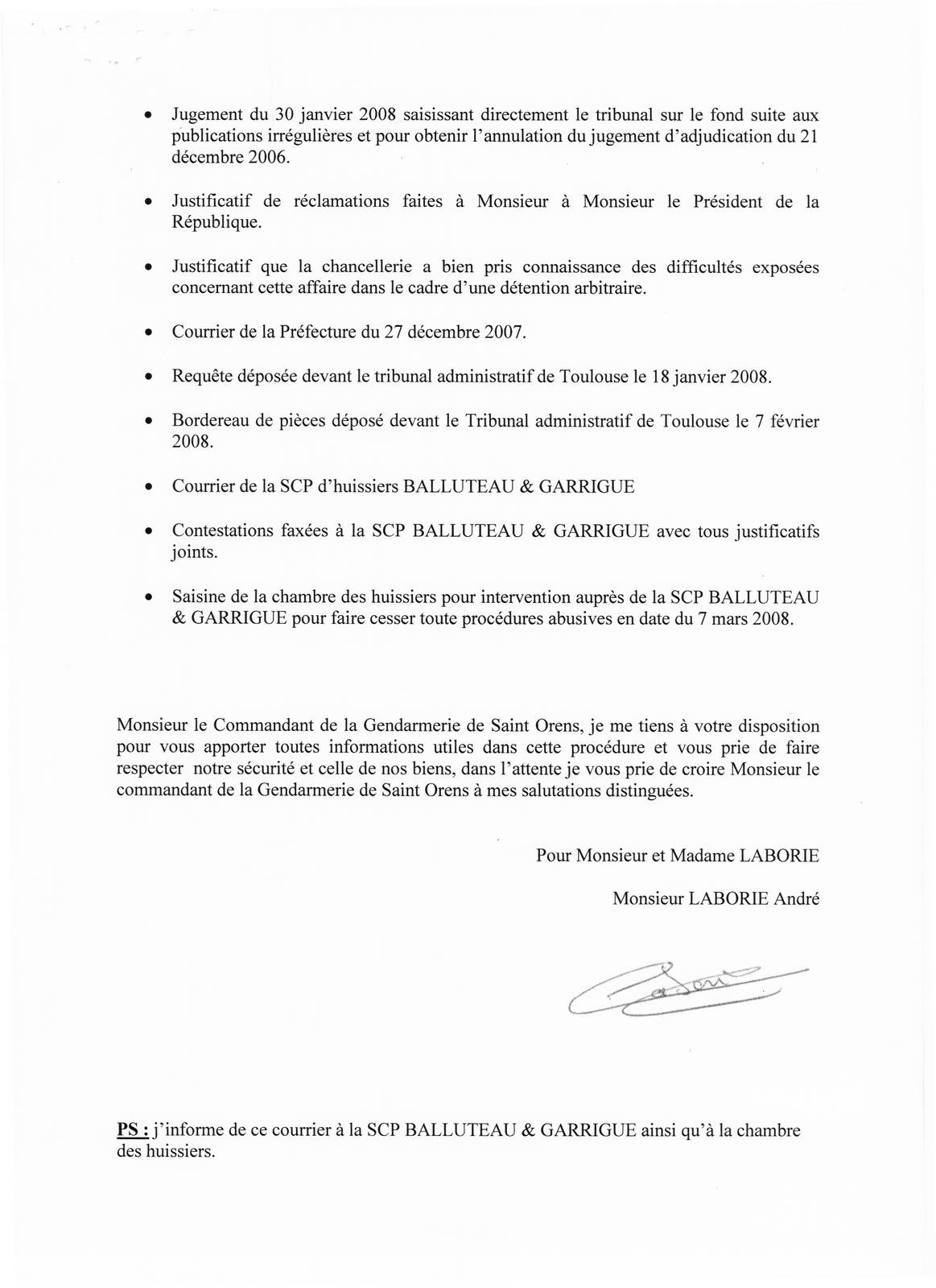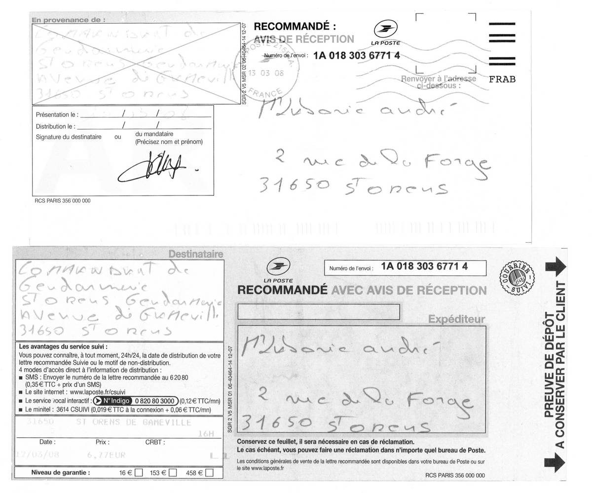 SAISINE DE LA GENDARMERIE SAINT ORENS LE 12 MARS 2008