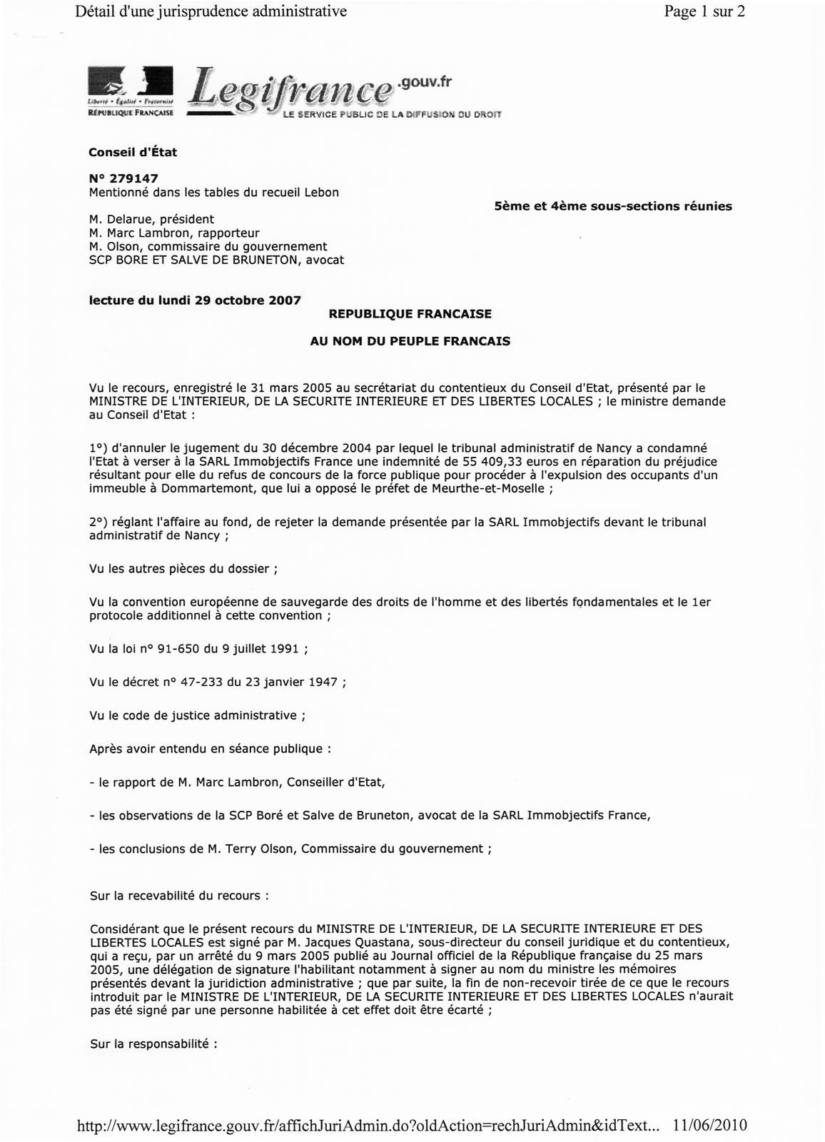 CE QUI A ETE JUGE PAR LE CONSEIL D'ETAT DANS CETTE DECISION: