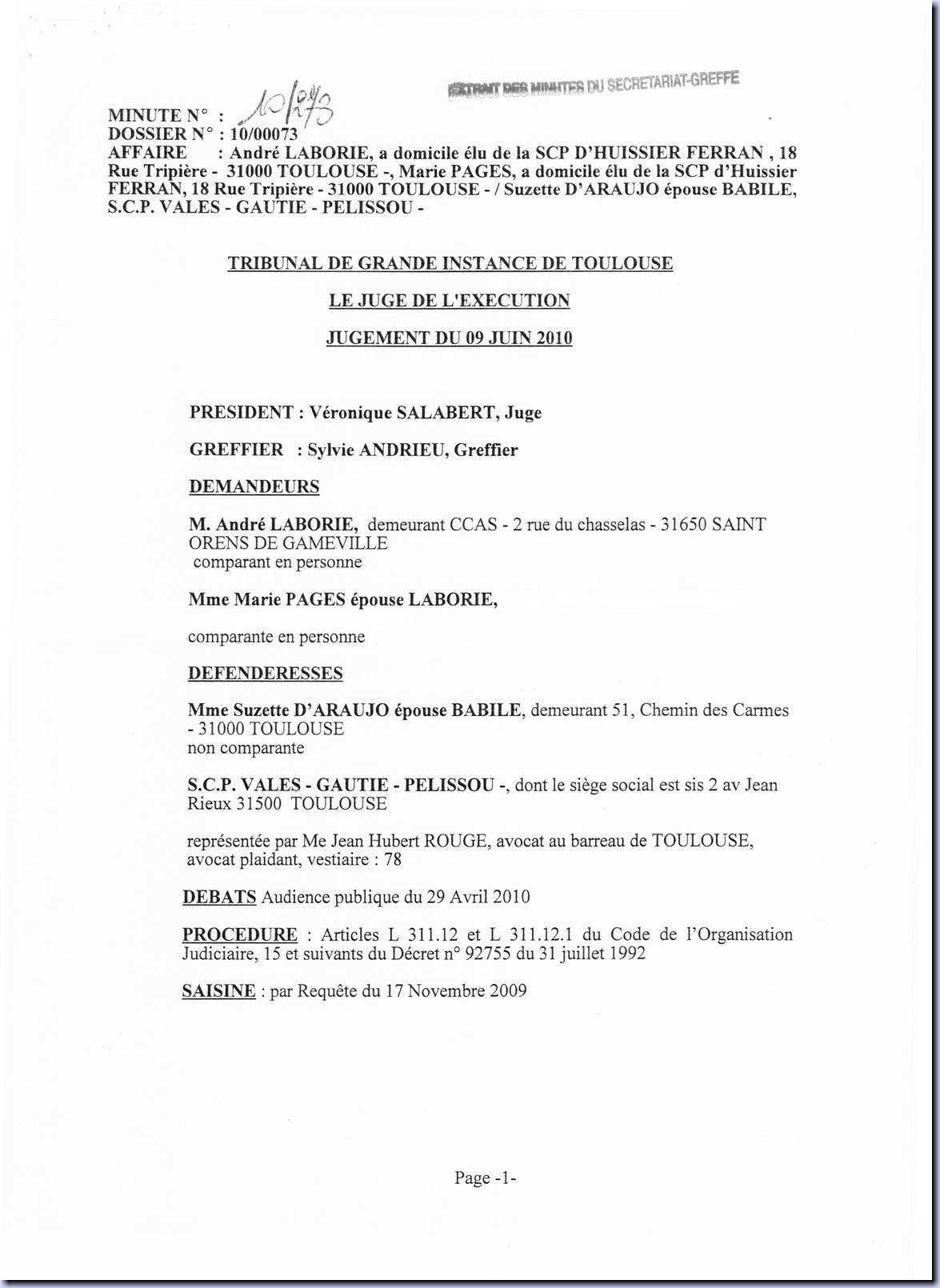 FAUX INTELLECTUELS DE MADAME SALABERT VERONIQUE JUGE DE L'EXECUTION & POUR COUVRIR LA FORFAITURE DE SES COLLEGUES.
