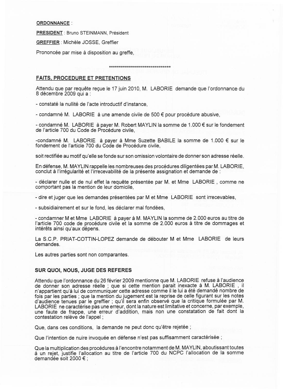 MONSIEUR STEINMANN REND UNE DECISION SUR UNE FAUSSES SITUATION JURIDIQUE.