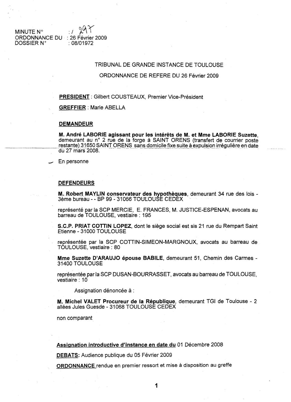 Alors que les significations sont toutes faites au domicile du 2 rue de la Forge 31650 Saint Orens.