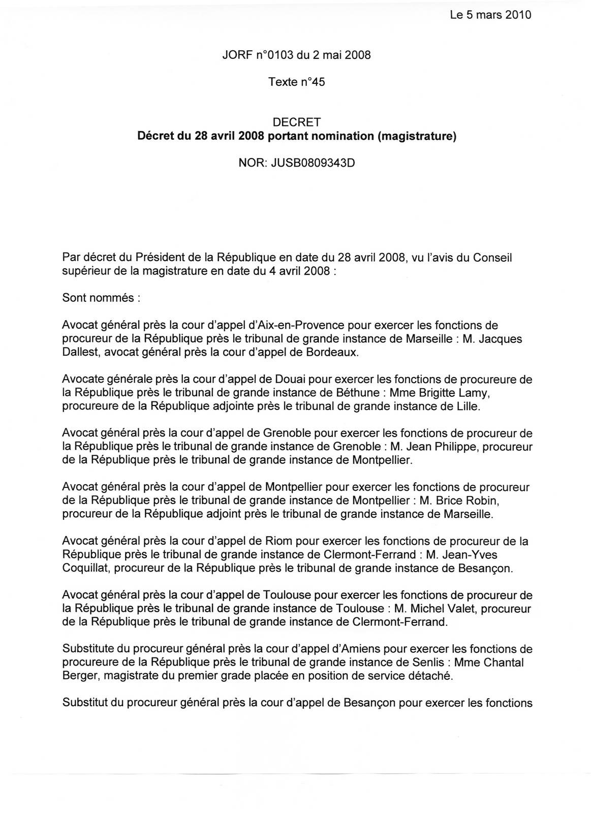 NOMINATION DE MONSIEUR VALET MICHEL: