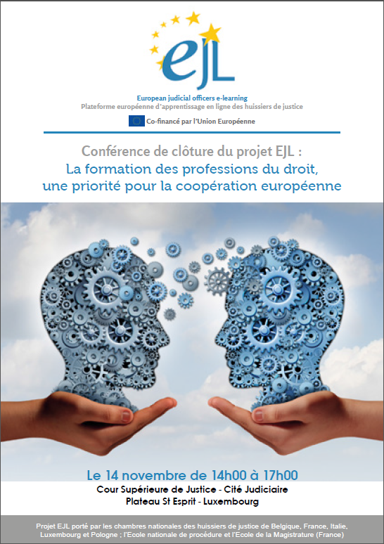 14/11/2014 : Conferences to the superior court of luxembourg: dematerialization of justice and training of legal professionals, european national priorities Friday, November 14, judicial officers of Belgium, France, Hungary, Italy, Luxembourg and Poland gathered in the Superior Court of Luxembourg to reflect on two key issues for the profession: the dematerialization of civil procedures and training for legal professionals especially in European law.