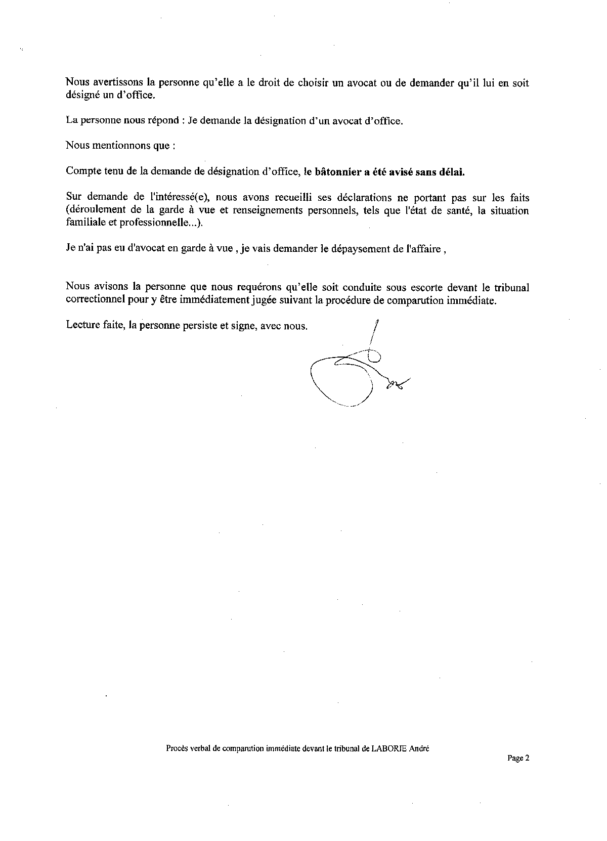 Défendu par Maître CAVAIGNAC Jean Yves " avocat d'office "