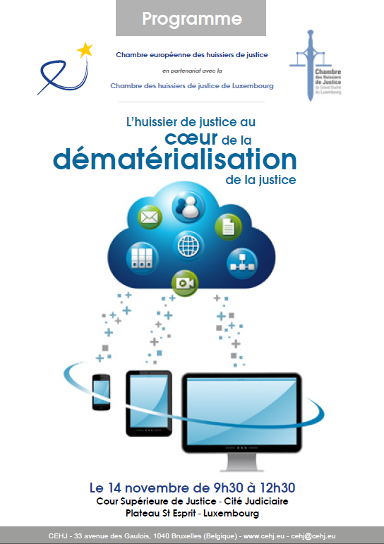 Dans ce contexte, la Chambre des huissiers de justice de Luxembourg et la Chambre européenne des huissiers de justice ont décidé d’organiser une conférence afin de présenter les actions mises en œuvre par les huissiers de justice en matière de dématérialisation des procédures civiles.