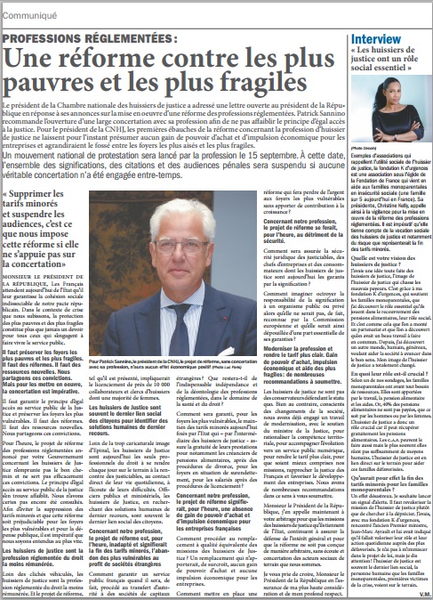 Publication d’une page avec intervention de Patrick Sannino dans le journal Le Parisien / Aujourd'hui en France paru le mercredi 10 septembre 2014 : Cliquer sur l'article pour le lire :