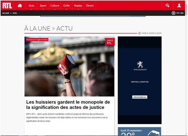 RTL : "Les huissiers gardent le monopole de la signification des actes de justice"