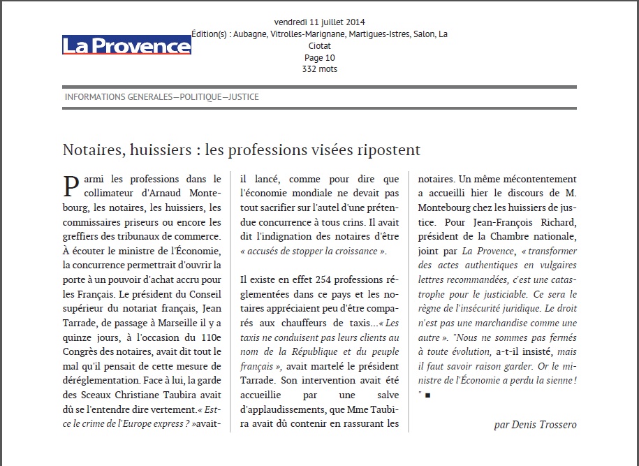 Following the conference given by Mr Arnaud Montebourg, Minister of Economy, Productive Recovery and Digital this July 10, 2014 at 3pm, listen to the reactions of the National Chamber of Bailiffs.